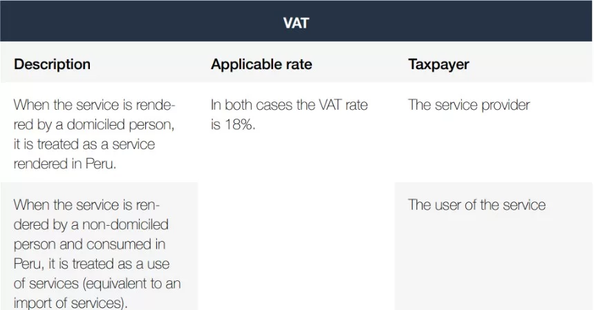 The activities carried out by Fintech companies are subject to the tax regulatory framework contained in the Income Tax Law (Supreme Decree N° 179-2004-EF) and the General Sales Tax Law (Supreme Decree N° 055-99-EF9). In this sense, the tax treatment granted to the services provided by these companies is as follows: